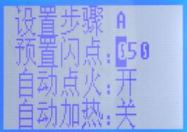 1、設置步驟應設置為A狀態,自動點火為開狀態,自動加熱為開狀態。